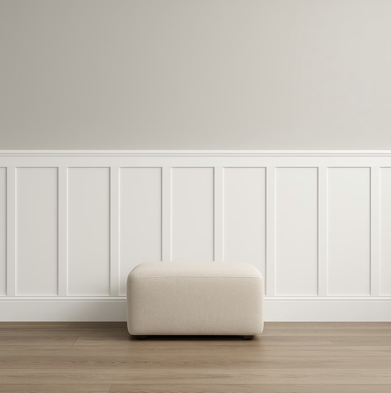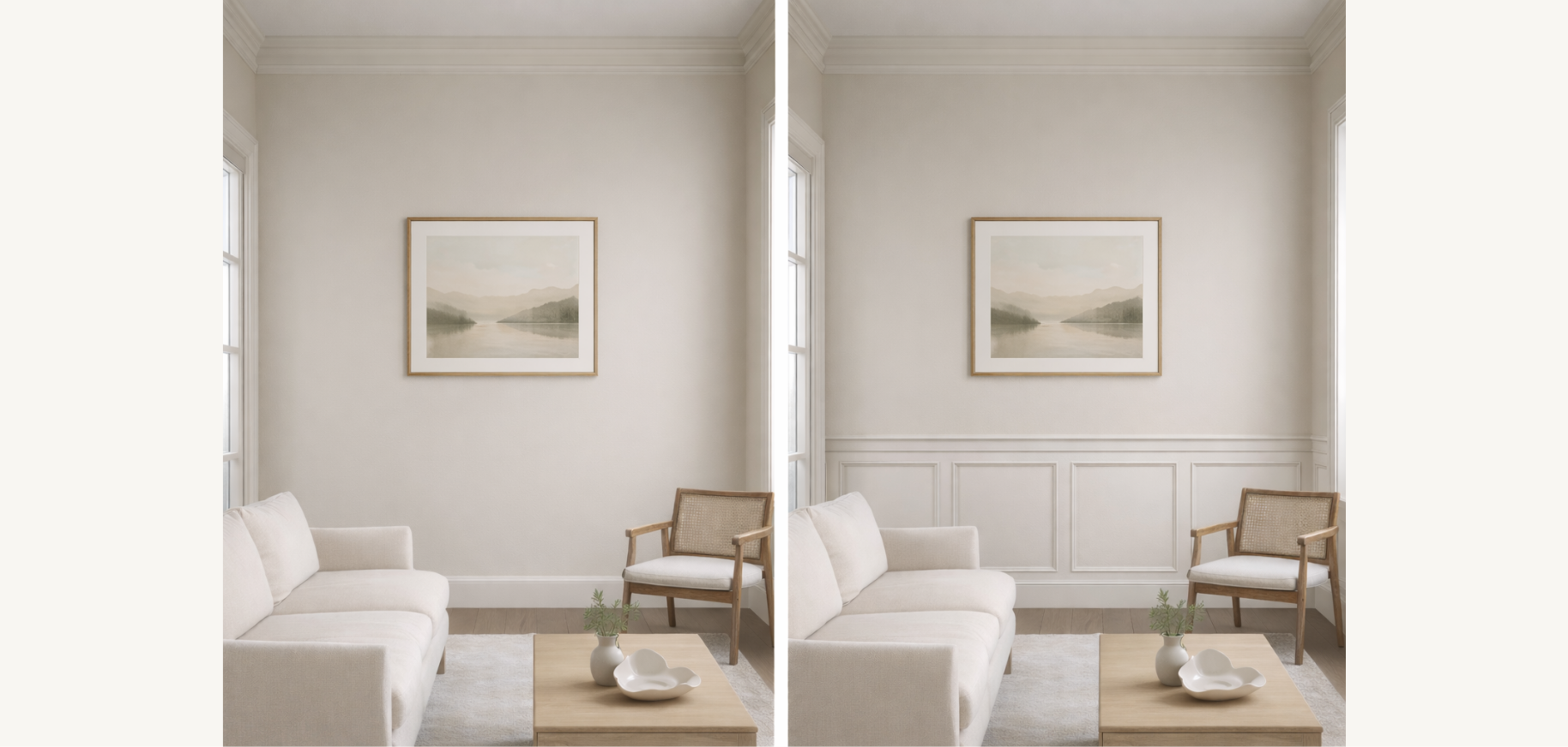 Adding paneling changes how the wall carries weight. The lower zone becomes grounded, and the upper portion feels lighter by contrast. The room reads more proportioned, even though nothing else has changed.